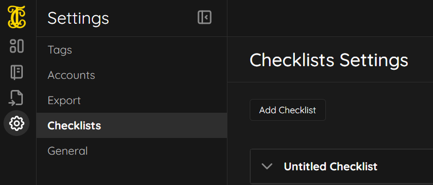 - On the left navigation menu, click on the gear icon, then click ‘Checklists’.